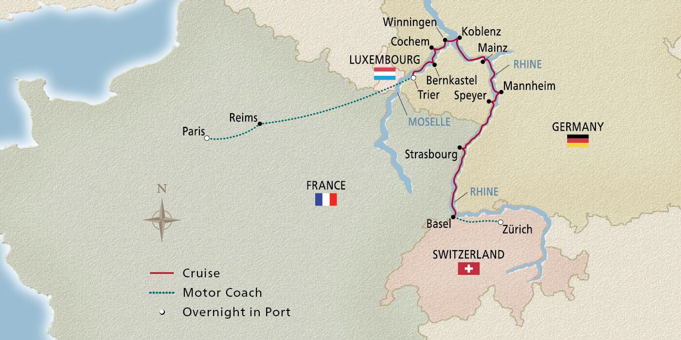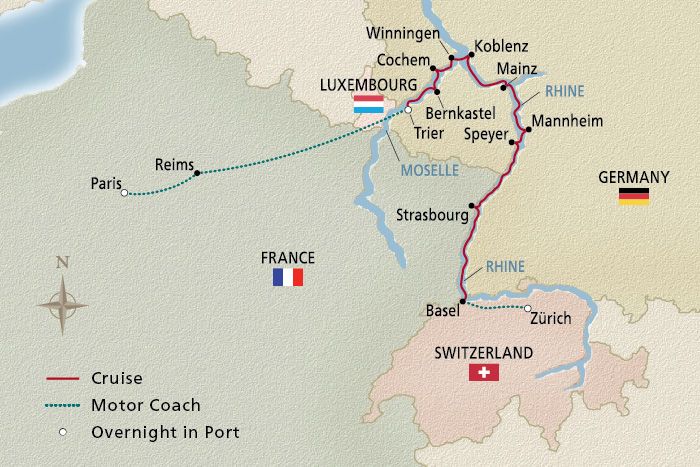 Treasured for its rich history, Trier was once the regional capital of the Holy Roman Empire. After Emperor Constantine the Great had a vision of Christ, he and his mother Helena built great churches and cathedrals here. A few still stand, the magnificent Romanesque Cathedral of Trier among them. The 20,000-seat amphitheater, the Roman Bridge and the massive Porta Nigra, the ancient city gate, are further relics of that time. Today, Trier is a picturesque town surrounded by forests and vineyards, known also as the birthplace of Karl Marx and as a vibrant university town. Embark your ship and settle into your stateroom.
