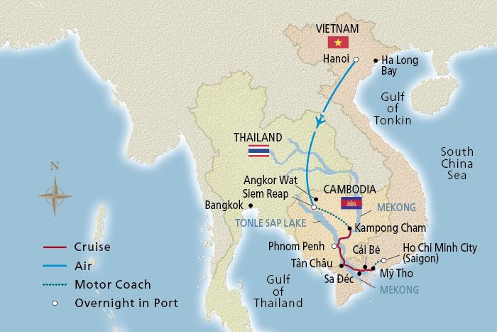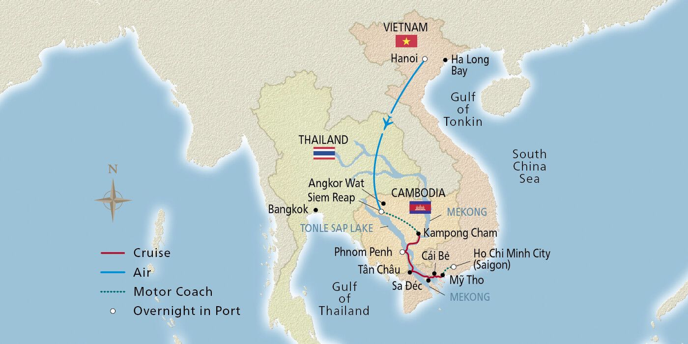 Journey along the Mekong and understand why it is truly the “Mother River of Southeast Asia,” sustaining civilizations through the centuries. Pass Mekong rice fields, villages and towns that seem frozen in time, and see ample evidence of the river’s role in farming and fishing. A lush landscape of evergreen and broadleaf forests drapes across flat landscapes that rise to rugged peaks. As the river opens up to the Vietnamese delta, narrow rivulets lead to inviting floating markets where all manner of the earth’s bounty is sold from ubiquitous longboats.
