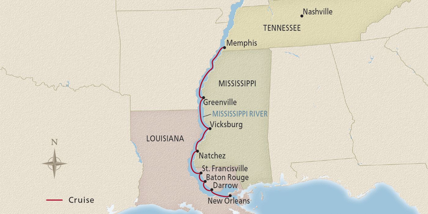 Situated on the Chickasaw bluffs overlooking the Mississippi River, Memphis is revered for its blues music and barbecue. Some of the most famed names in blues, including B.B. King, got their start in Memphis, and the city has a well-deserved reputation as the home of this classic American music genre. Memphis is also celebrated for its culinary heritage and is renowned for its traditional barbecue restaurants serving flavorful dry rub ribs. Rich in history and culture, Memphis’s many notable museums include the National Civil Rights Museum and Elvis Presley’s Graceland. After breakfast, disembark your ship and journey home.
