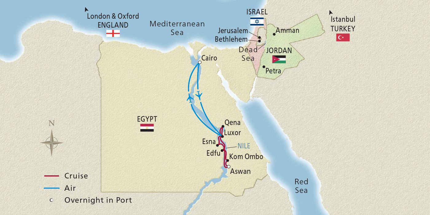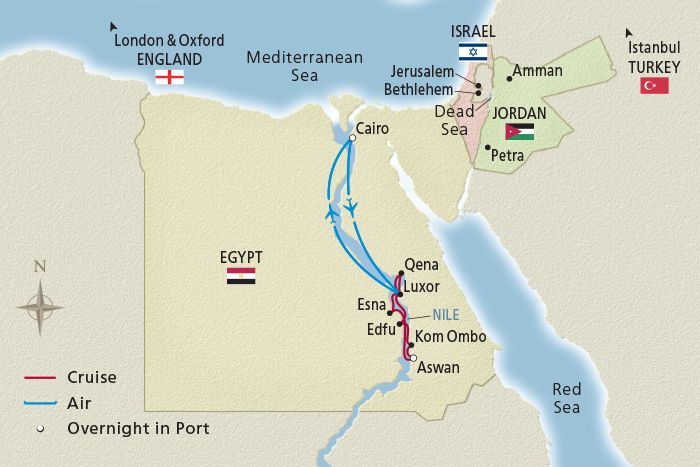 After breakfast, check out of your hotel and fly to your embarkation city.